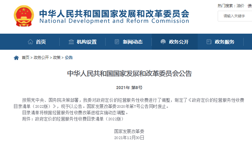 近日,國家發(fā)改委制定了《政府定價(jià)的經(jīng)營服務(wù)性收費(fèi)目錄清單(2022版)》,并予以公告。國家發(fā)展改革委2020年第7號(hào)公告同時(shí)廢止。目錄清單將根據(jù)經(jīng)營服務(wù)性收費(fèi)改革進(jìn)程實(shí)施動(dòng)態(tài)調(diào)整。