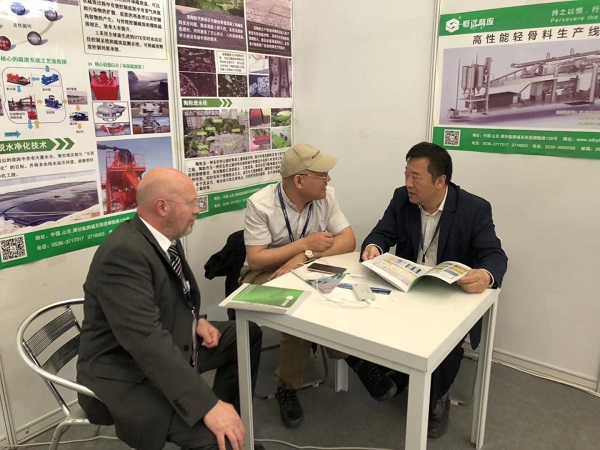 全國工商聯(lián)環(huán)境商會秘書長馬輝親臨展廳與馬總交談