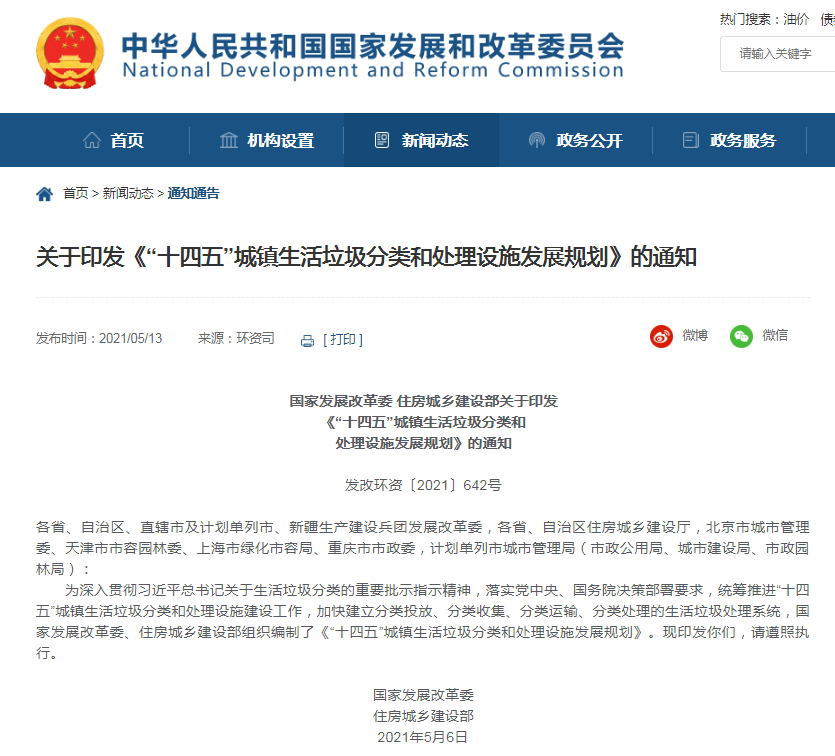 2021年5月6日,國(guó)家發(fā)展改革委和住房城鄉(xiāng)建設(shè)部聯(lián)合印發(fā)了發(fā)改環(huán)資〔2021〕642號(hào)《“十四五”城鎮(zhèn)生活垃圾分類和處理設(shè)施發(fā)展規(guī)劃》的通知。其中,與建材行業(yè)相關(guān)的有: