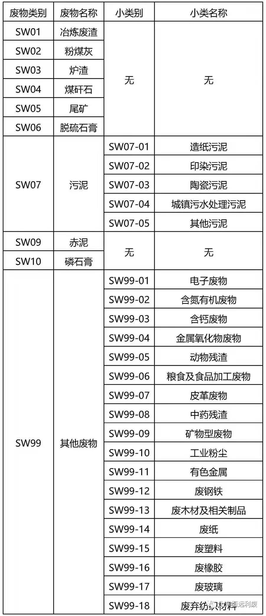 一般工業(yè)固體廢物名錄