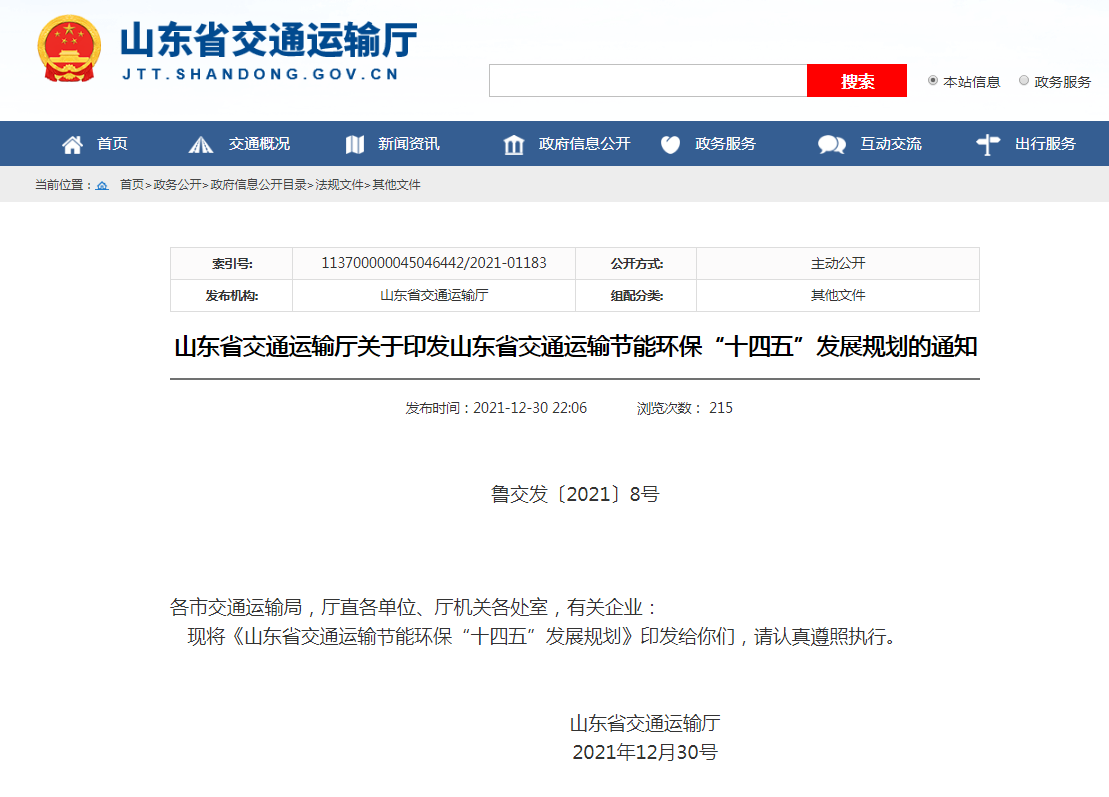 山東省交通運(yùn)輸節(jié)能環(huán)保“十四五”發(fā)展規(guī)劃