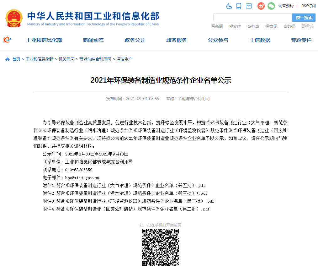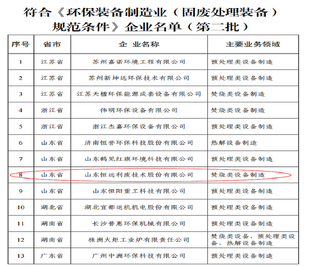 入選2021年環(huán)保裝備制造業(yè)固廢處理裝備規(guī)范條件企業(yè)名單