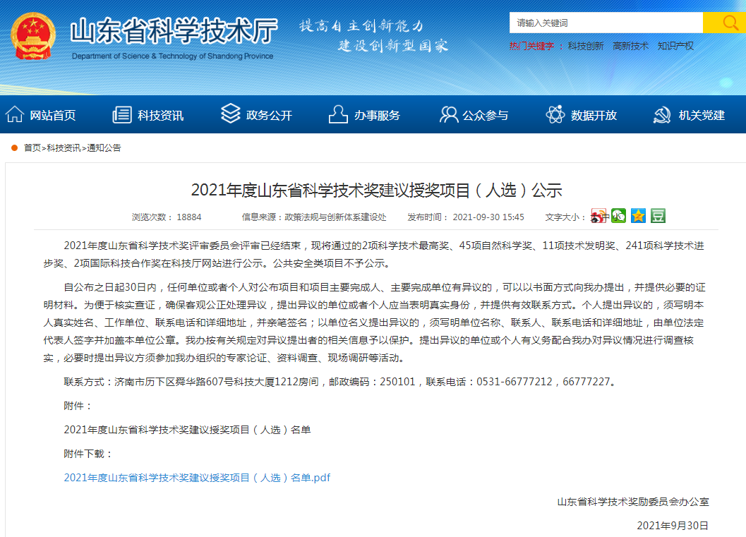 入選2021年度山東省技術(shù)發(fā)明獎