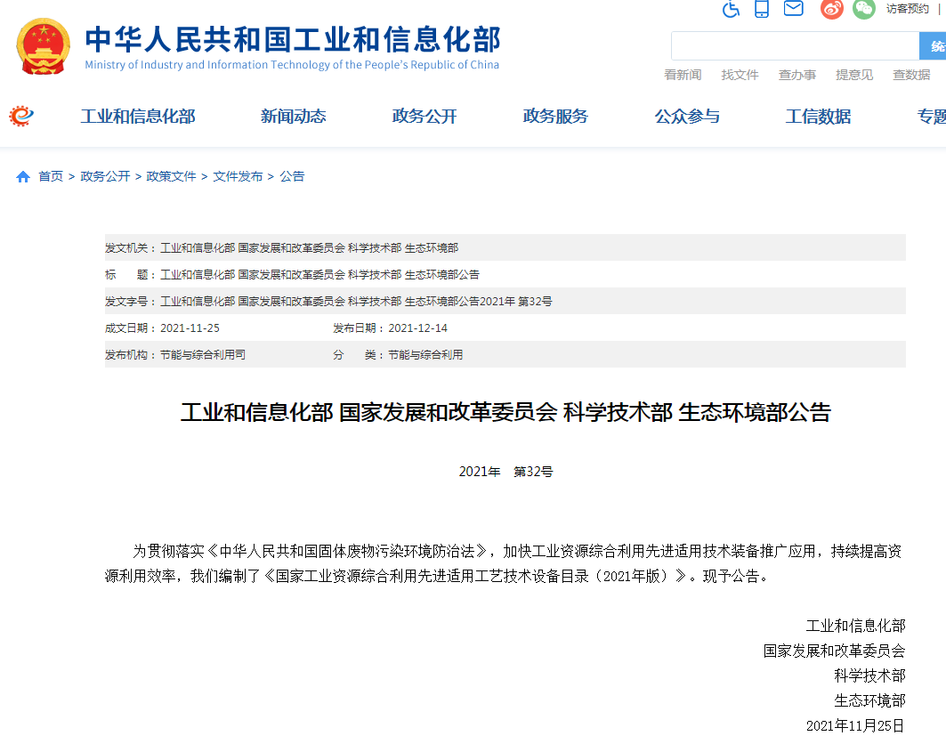 入選國家工業(yè)資源綜合利用先進適用工藝技術(shù)設(shè)備目錄